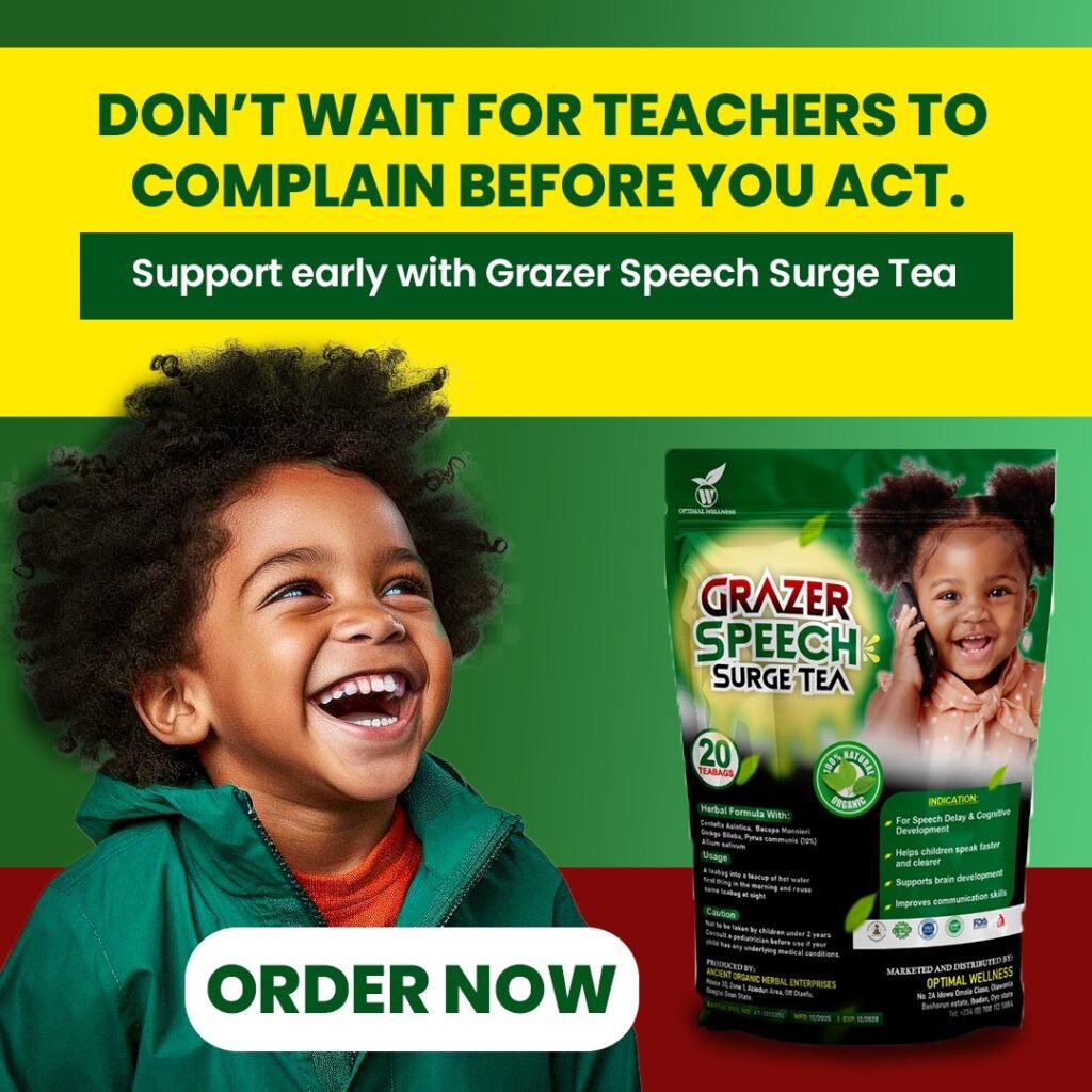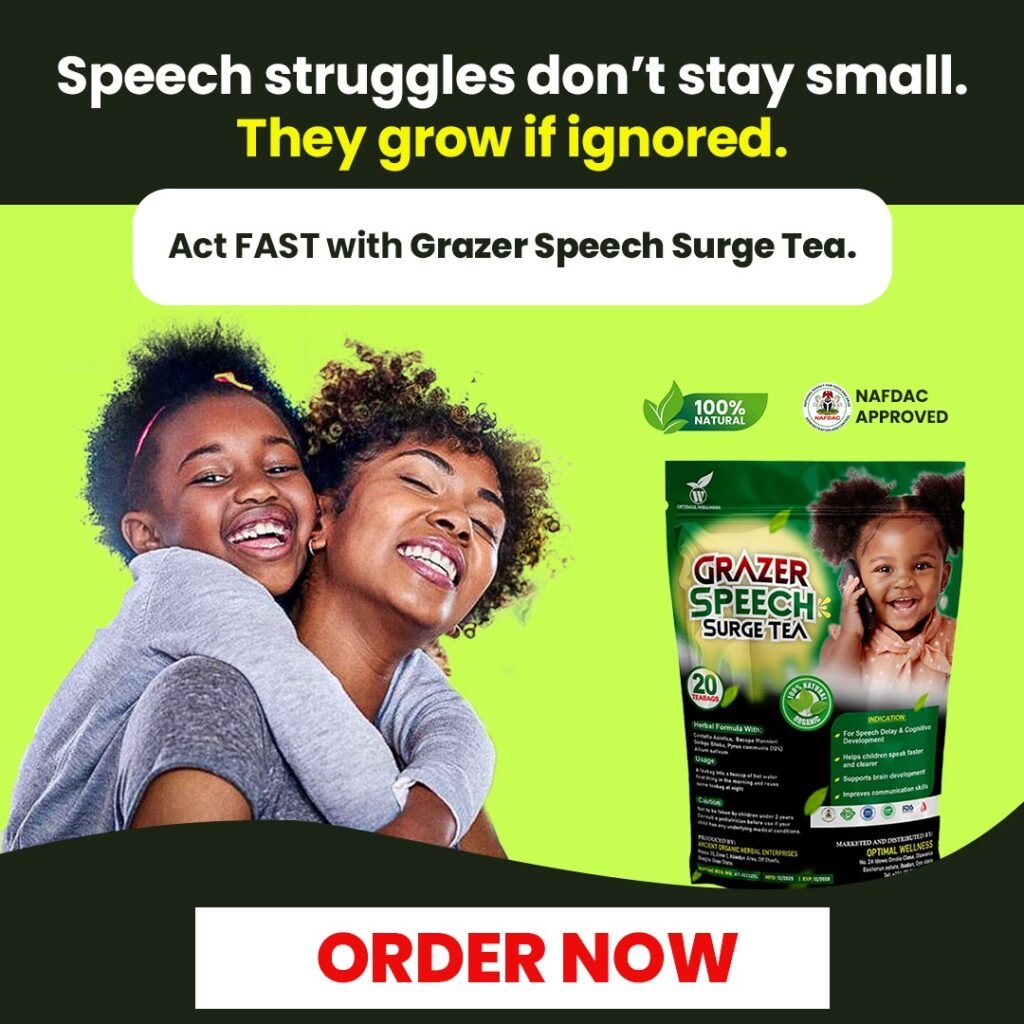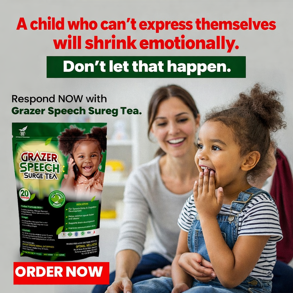 That night he asked me, “Mummy why can’t I talk like others?” I cried after he slept. We tried speech exercises… videos… even therapy sessions. Progress was slow… almost discouraging. Then I heard about Grazer Speech Sureg Tea. Honestly, I didn’t expect much. But within weeks, I noticed clearer sounds. Then words came easier…